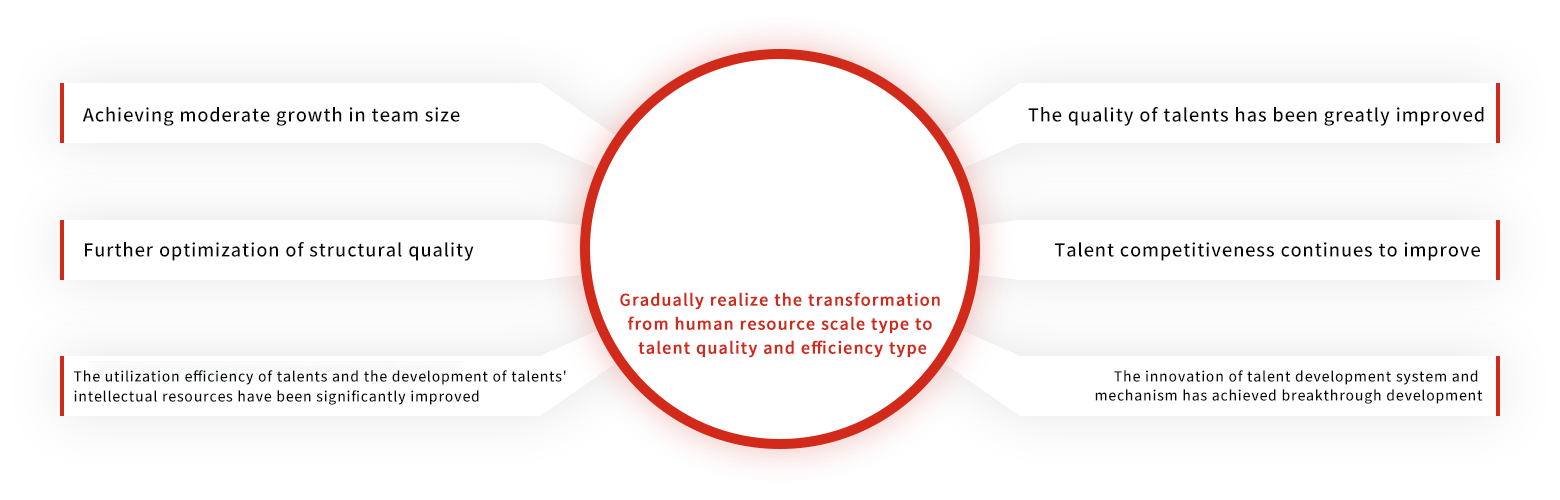 According to the overall requirements of the Group’s "14th Five-year plan" development strategy, centered on the overall goal of "reform, adjustment and high-quality development", the group aims to "activate organizational efficiency, empower the group to develop ‘high, new and special’ technology, and strive to create an efficient and innovative intellectual resource system ". Focusing on "creating an agile organization, promoting human resources digitization transformation, and improving human resource allocation efficiency and effectiveness", etc., the group created comparative advantage 2.0 in human resources competition and built a talent basis for BAIC Group to rank among the tops of Chinese car enterprises and move towards the first class of world auto industry through the "specialized, professional, international and younger" talent team construction.