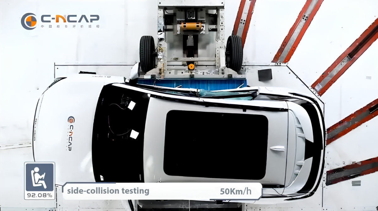 "By distributing collision energy through various paths, including seat crossbeams, roof crossbeams, sill beams, upper beams, and A/C pillars, Beijing X55II establishes a complete collision force transmission path. This minimizes B-pillar deformation and prevents significant intrusion and crushing in side impacts, maximizing passenger side-collision safety." – C-NCAP evaluation report.
