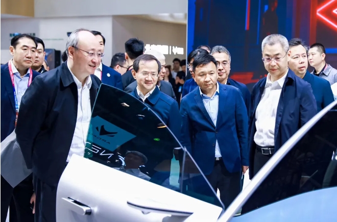 4月26日下午,市委书记尹力,市委副书记、市长殷勇到顺义区调研时,来到北京国际车展,在北汽集团展台察看最新车型和创新产品展示。