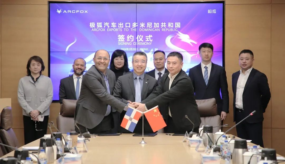 2月26日,“极狐汽车出口多米尼加共和国签约仪式”在蓝谷举行。北京蓝谷极狐汽车科技有限公司与来自多米尼加的SERTELSA SOLAR公司和青岛唐百进出口有限公司签署合作协议,就进入多米尼加市场事宜达成共识。此次协议的签署,标志着极狐汽车正式进军拉美市场。