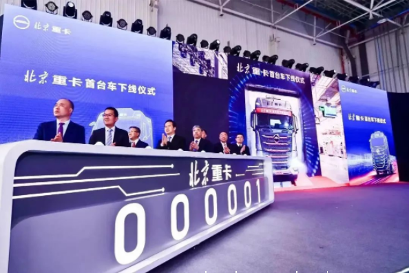 由该工厂生产的首台全新一代北京数智重卡正式下线并交付客户