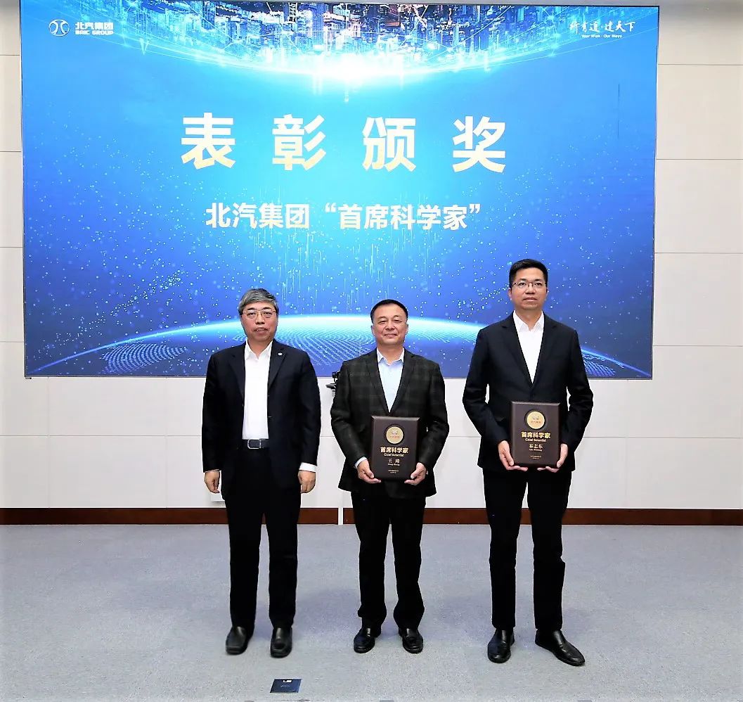 研究总院王璋、北汽福田秦志东获聘“北汽集团首席科学家”。田俊涛等43人获聘北汽集团专业技术带头人。大会还对6个中国汽车工业科学技术奖获奖团队和2个北京市科学技术奖获奖团队进行了表彰。