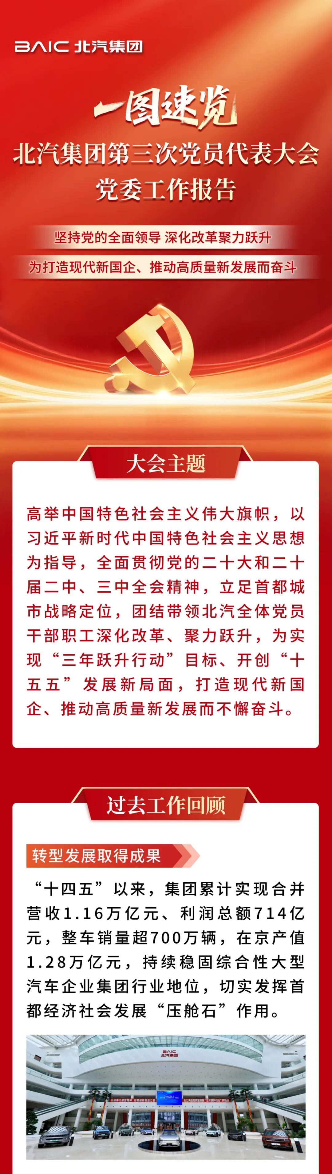 9月6日,中国共产党北京汽车集团有限公司第三次党员代表大会胜利召开。北汽集团党委书记、董事长张建勇代表中共北汽集团第二届委员会向大会作题为《坚持党的全面领导,深化改革聚力跃升,为打造现代新国企、推动高质量新发展而奋斗》的报告。