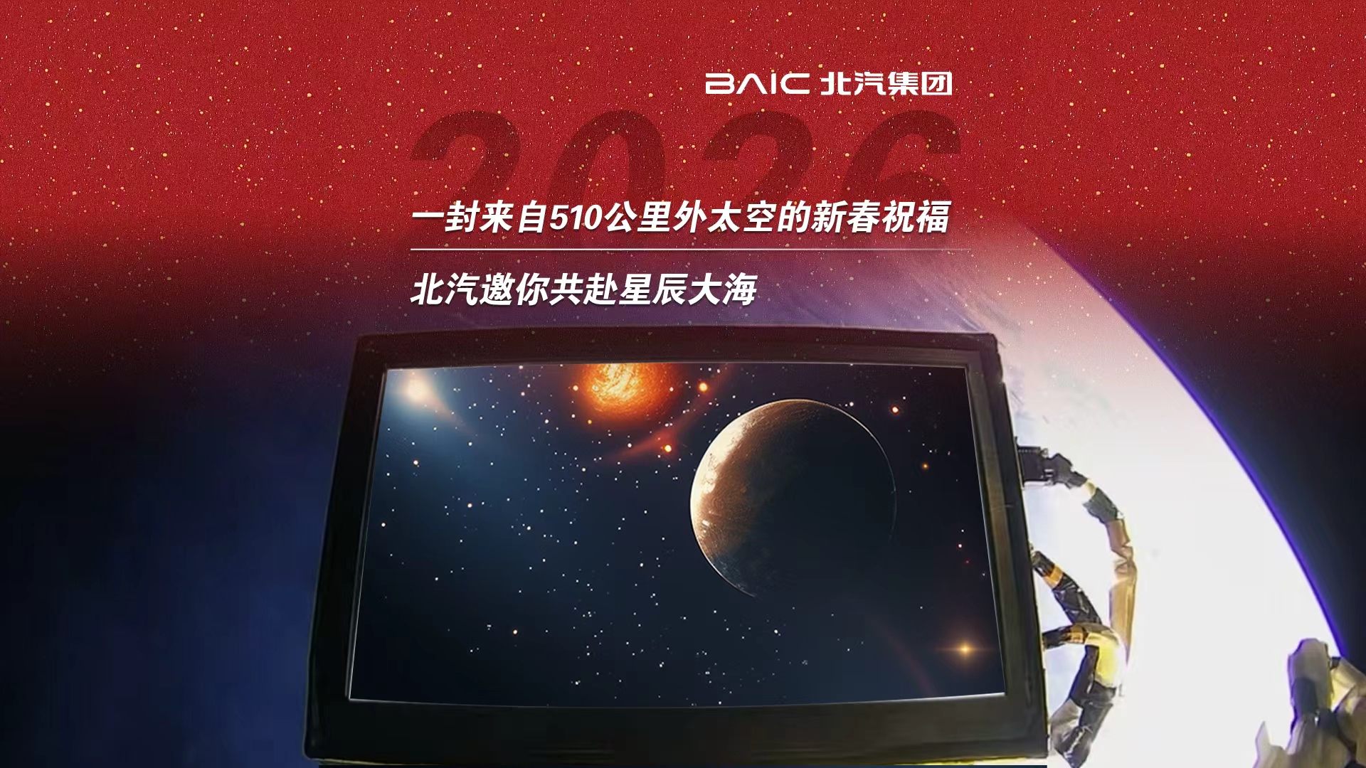 来自太空的马年新春祝福!新的一年,北汽伴你一路骐骥驰骋,奔赴星辰大海。2026/03/04