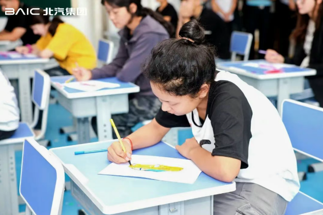 活动中,北汽集团青年志愿者精心设计了《小北伴你行:汽车奇妙之旅!》公益课程,通过互动游戏、动画演示和动手实践,带领孩子们探索汽车历史及交通安全知识,孩子们也用画笔描绘出心中的智能汽车,展现无限创意。