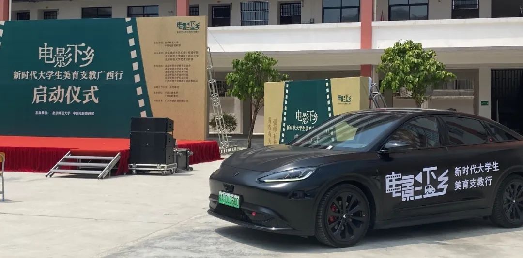 7月24日,贴着“电影下乡”标识的极狐阿尔法S先行版、极狐阿尔法T和福田大将军皮卡,缓缓驶入广西大化高级中学和广西大化实验小学。这里是由北汽集团联合北京师范大学、中国电影资料馆发起的2023年“电影下乡——新时代大学生美育支教行”活动首站。
