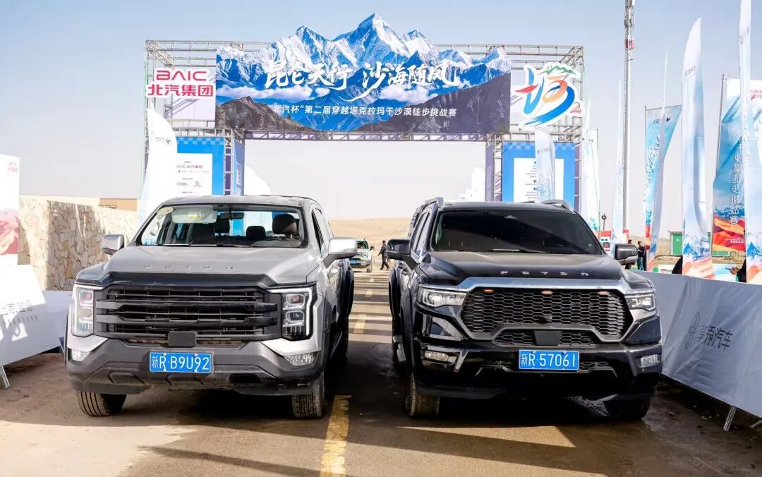 从越野到皮卡,从大巴到旅行车,从燃油、增程再到纯电,北汽集团全程护航本届塔沙徒步挑战赛,展现硬核产品实力。面对沙漠和复杂地形,北京越野和福田皮卡轻松驾驭,作为保障用车全程跟随队伍,提供各项服务。其中,“全场景专业越野SUV”BJ40燃油拥有两纵八横一体式大梁,机械式全时四驱+三把锁,轻松征服沙地、岩石地形,标配2.5吨拖拽资质,是野外救援的强力后盾;“增程硬派SUV之王”BJ40增程支持大功率外放电,自带移动能量站,在赛程途中多个点位进行赛事补给,为队伍提供休息、冷饮、医疗等服务,更打造户外唱吧沙漠火热派对;福田火星皮卡搭载48V柴油轻混发动机,拥有240mm高离地间隙底盘,在实际保障中有效防止了陷沙,提升了爬坡和救援效率,完美支持徒步补给与快速救援……此外,极狐、享界也亮相本届徒步挑战赛,让广大参赛选手体验到越级价值的纯电产品和“人生如旅”的价值体验。
